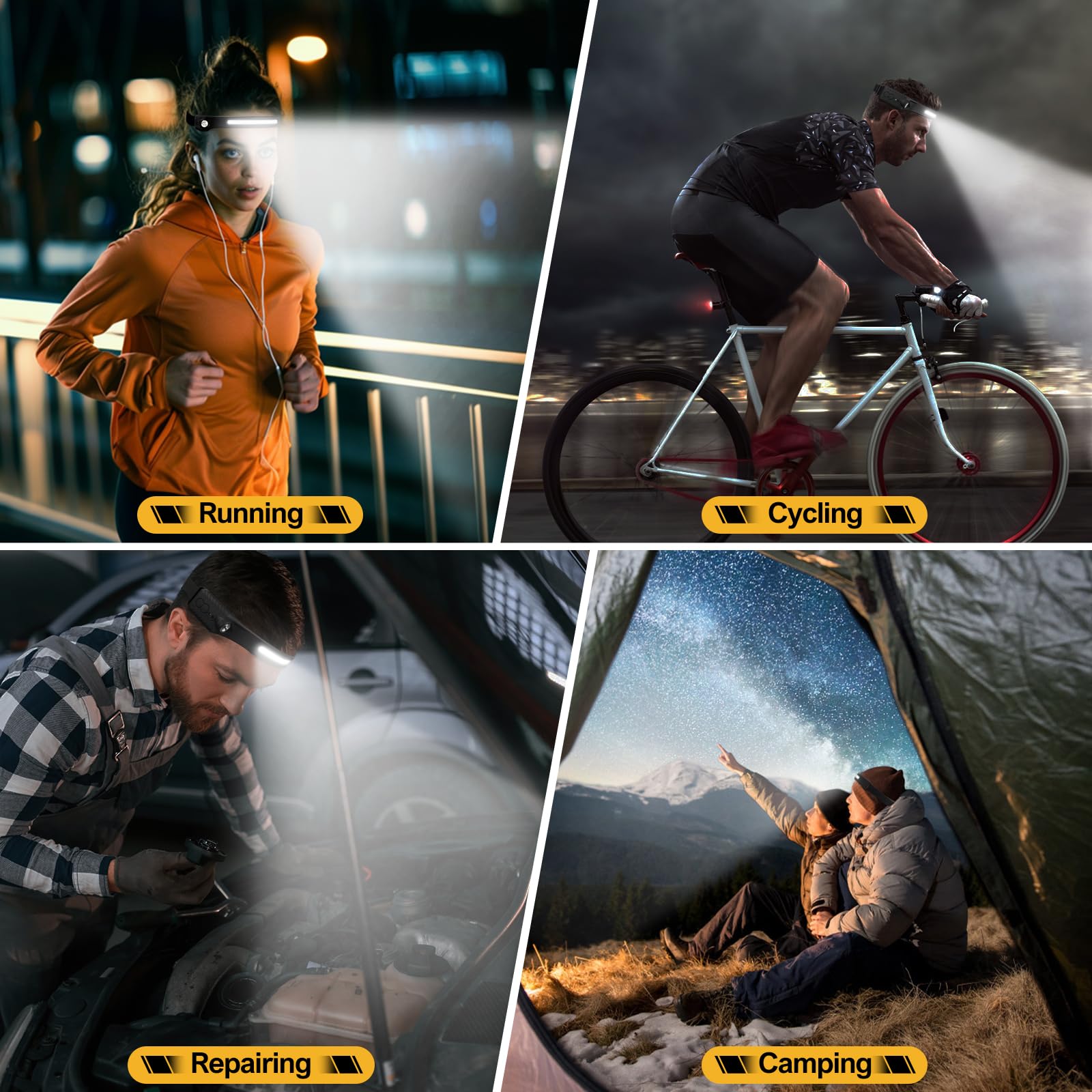 Featuring a 1200mAh large-capacity battery, this headlamp rechargeable for adults provides continuous use for 2.5 to 8 hours, depending on the mode. With an IPX4 waterproof rating, this headlights for head is protected against rain and snow, guaranteeing reliable performance in any weather.